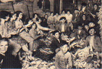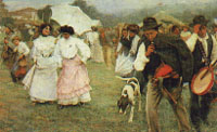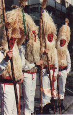 | Hábitos y Festejos Con el bautizo comienza el ciclo vital de los asturianos. Los padrinos regalan el bollu o pegarata (pan dulce o mantecado) a sus ahijados , cada año por Pascua, y hasta que aquél se case. Hacia los catorce años los hasta entonces chiquillos ingresan en el grupo de los mozos con todas las prerrogativas: el cortejo, las luchas rituales como pruebas de virilidad, etc. Precisamente una de las costumbres relacionadas con el cortejo fué la de hacerlo de forma colectiva los mozos en casa de la moza ante sus padres; sin olvidar la de "char la presona", que se hacía en la habitación de la chica, sentado él en el borde de la cama y acostada ella en camisa. El casamiento consistía en el rebodu o petición de dádivas para los recién casados (para hacer frente al primer año) que se acompañaba de tabaco y cantiellos (trozos de pan dulce). Se celebraba la boda con el correspondiente banquete en casa de la novia, y la tornaboda, con el acarreo del ajuar de la novia en carro del País acompañado de gaita, y seguido de todos los invitados montados a caballo hasta la casa del novio; una vez allí, si era el mismo día de la boda, se hacía un banquete con comida y cena, y si era ocho días después, se hacían cena y baile al son de la gaita hasta el alba. El entierro viene marcado por el velatorio, en el que se Ilora el cadáver (hasta con plañideras profesionales); la oblada que se pone en la sepultura: pan, vino, carne, granos, etc. (los más pudientes llevaban una novilla delante de la comitiva fúnebre); o el hábito de no quitarse la montera más que para echar un puñado de tierra (después de besarlo) en el féretro. Seguidamente se celebra el banquete funerario, que termina con el responso del cura y el atrancar de ventanas de la casa. En cuanto al ciclo festivo en el período invernal de Navidad a carnaval se suceden las comedias, petición de aguinaldos y comilonas, los disfraces...; Cuaresma, Semana Santa y Pascua son momentos de purificación, cultos y propiciaciones, con sus prácticas piadosas, bendiciones, ayunos, abstinencias y procesiones. En mayo, con el canto del cuco, se abre un nuevo ciclo del renacer de la vida que marca su hito en San Juan, fiesta del solsticio de verano y de contacto con el mundo de las xanas, hogueras y danzas rituales, de virtudes milagrosas del fuego y el agua, de enramado de fuentes y ventanas. En esta temporada veraniega se prodigan las romerías y fiestas patronales, con la hoguera en la víspera, alboradas al son de la gaita, procesiones de panderos y ramos, la erección de mayes (árboles hincados), la puja del ramo, el baile y la comida en el prado de la romería, sucediéndose bailes y juegos hasta el día siguiente. Las salees o procesiones marineras con la bendición de las aguas del mar también tienen lugar en este tiempo, que finaliza con la cosecha y la bajada de los ganados de los puertos. Noviembre abre un nuevo ciclo ("en Todos los Santos la nieve por los altos") que avisa de la llegada del invierno, con la preparación para la estación fría, con el culto a los antepasados, la celebración de la matanza del cerdo, es tiempo de recogimiento. Anterior / Siguiente |