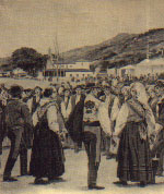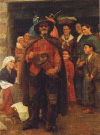 | Instrumentos Musicales, Canciones y bailes La organografía popular asturiana integra los instrumentos tradicionales de más raigambre con los que incorporaron tiempos y modas. La base rítmica del baile antiguo son los panderos y panderetas, siempre femeninos. En manos de los bailarines, las castañuelas y los pitos responden al ritmo de los panderos y dan ocasión para el lucimiento individual. Cuando no hay medios, se adaptan los útiles de la casa: el cedazo y la payella también acompañaron al baile; esta creatividad se mantiene muy viva en los instrumentos de viento de fabricación casera, quizás los más variados: cuernas, berrones, flautas de hueso, zampoñas de centeno... en una tradición muy antigua que en Asturias podría rastrearse casa por casa. Más tardía, y vinculada a la romería, es la pareja de gaita y tambor. La historia de la gaita (el instrumento más arraigado en la cultura asturiana) se documenta en la Baja Edad Media, aunque el tambor, en su forma actual, tiene su origen en las bandas militares del siglo XVIII. Otros instrumentos melódicos de gran fuerza fueron el violín y la zanfoña, que sonaron por ferias y mercados en manos de ciegos mendicantes junto con el bombo, la pandereta o los hierros. El clarinete y el acordeón llegaron a la música asturiana en el siglo XIX por la influencia de la cultura urbana, al igual que en el caso de sonadores mecánicos -pianolas y organillos- que, a comienzos del siglo XX, hicieron perder clientela a los músicos tradicionales. La tonada es la forma musical de mayor prestigio en la cultura asturiana, alcanzando el emblemático nombre de canción asturiana. Es muy floreada, exige buenas cualidades físicas y se canta en solitario, a la rueda del carro del País o al son de la gaita, en un ritual que se mantiene en toda su pureza. Los tipos de tonada se diferencia por zonas geográficas (Carreñana, Allerana) o por sus contenidos (minera). La canción para el baile es patrimonio de la mujer, heredera y transmisora del cancionero asturiano. La melodía en el baile es más sencilla que la tonada y suele emplear versos de ocho sílabas en forma de cuarteta o romance. Destaca la vaqueirada, de gran fuerza expresiva, melodías de carácter arcaico y ritmo vivo y marcado. En Asturias conviven dos formas coreográficas diferenciadas: las danzas y los bailes. Las danzas se diferencian de los bailes por su carácter más solemne y en ellas se adivina un primitivo sentido mágico-ritual; por otra parte son manifestaciones de mucha perduración a lo largo del tiempo. Entre las danzas que se mantienen aún, están el Corri-Corrí de cabrales, la Lluita de Bual, las danzas de palos y arcos, la Danza Pelegrina y la Danza Prima, con variantes de sentido más festivo. Entre las desaparecidas destacan las de espadas. Los bailes se caracterizan por sus movimientos más libres, por su sentido más festivo y por ser más abiertos a los cambios y modas. Se dividen en varios tipos: bailes a lo suelto ( xota, saltón, muñera y pericote), agarrado (pasodobles, vals, polka, rumba, etc.), bailes de corro (xirandilles, cariao) y bailes de juego (ríu verde, la raposa, etc.). Anterior / Siguiente |