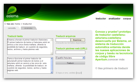 El nuevu traductor de testos a l'asturianu entró en serviciu a les once d'esta mañana, ufriendo la posibilidá de traducir, en cuestión de segundos, testos, archivos y hasta páxines web.