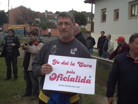 Los xugadores de bolos Iván Fernández y Bernardo Menéndez, amás del aficionáu y ex sportinguista, “Cundi”, sumáronse a la campaña “Doi la cara” del Conceyu Abiertu pola Oficialidá.